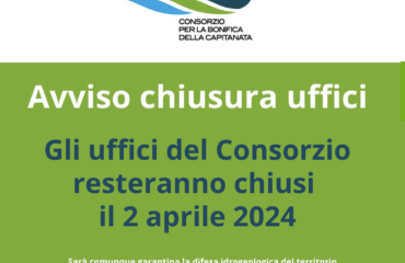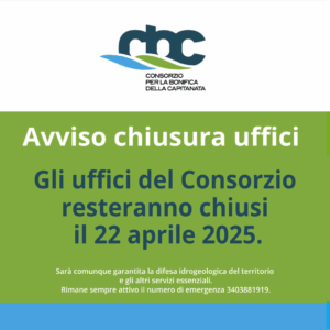Gli uffici del Consorzio resteranno chiusi il 14 agosto 2025. Sarà comunque garantita la difesa idrogeologica del territorio e gli altri servizi pubblici essenziali.
