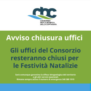 Gli uffici del Consorzio resteranno chiusi per le Festività Natalizie.
