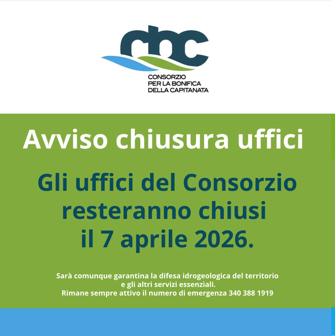 Gli uffici del Consorzio resteranno chiusi il 7 aprile 2026.