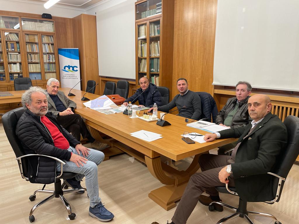 Il Sindaco Luigi Di Fiore, accompagnato dai tecnici Coppolella e Datti, ha incontrato il Direttore Generale del Consorzio dott. Francesco Santoro, il Direttore dell’area Ingegneria ing. Raffaele Fattibene e il dott. Alfredo Pitullo, per programmare interventi di manutenzione sulle aree rientranti nel polder di Ciccalento e sul controfosso del Candelaro.