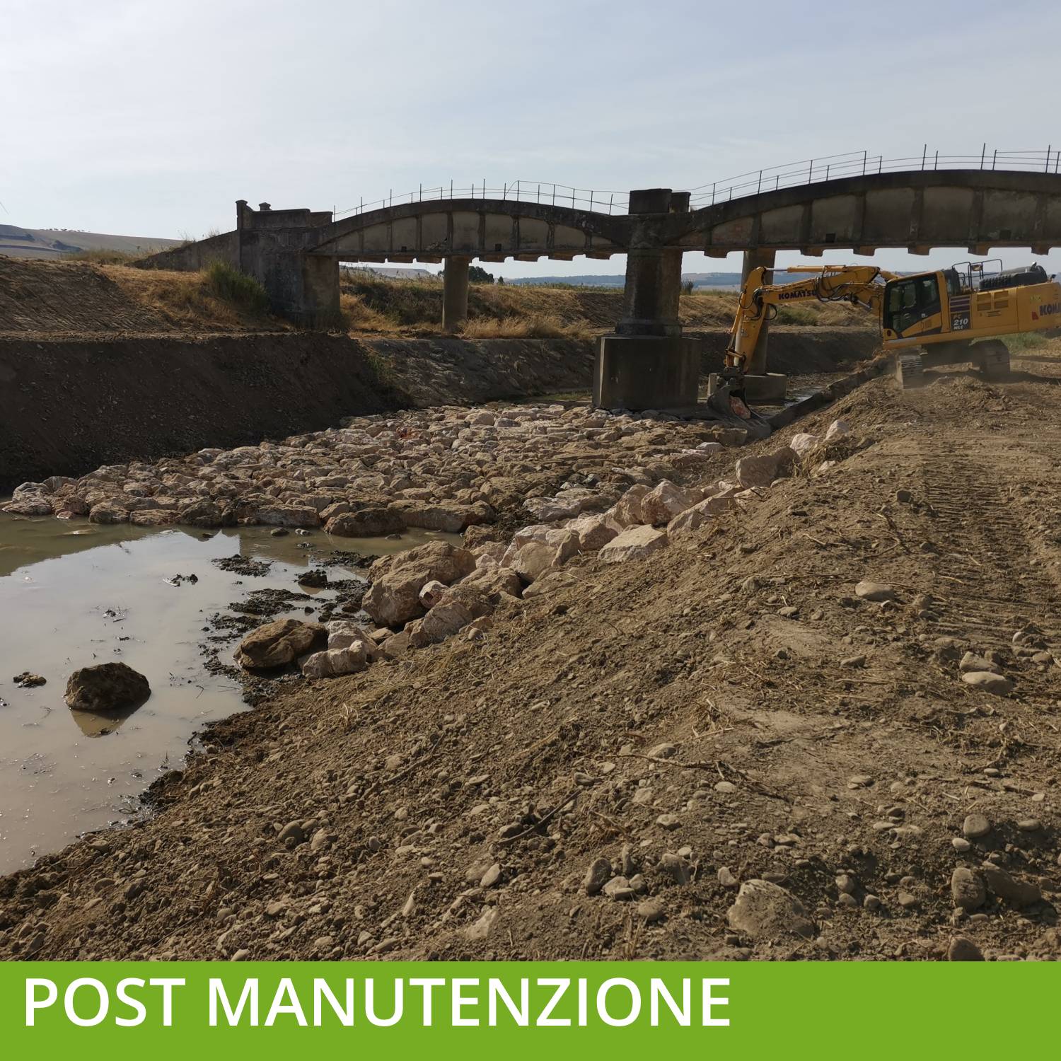 Gli interventi prevedono il risezionamento e il ripristino della funzionalità idraulica dell’alveo del torrente, mediante la posa di scogliera pesante sulle sponde e sul fondo del Carapelle al fine di riempire i vuoi creati dalle acque in piena e stabilizzare la sponda destra in prossimità del ponte tubo AQP dove il rivestimento dei gabbioni risultava parzialmente scalzato.