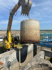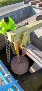 Ripristinato il regolare scorrimento del galleggiante della Vasca 11 in agro di Cerignola, mediante lo sblocco dello snodo che consente il corretto funzionamento dell’otturatore.